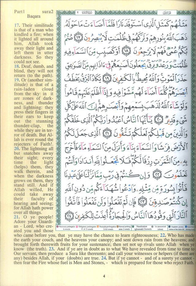 This complete Colour Coded Tajweed Quran comes with a nice and beautiful hard cover. Meanings of the Quranic versus are translated into English and placed on the margins around the Arabic text. This Tajweed Quran is in Hafs narration. All our Tajweed Quran products – including this Quran – come with the following: 1- Colour coded letters: to present the Tajweed rules, very good and simple way to learn and apply Tajweed rules . 2- A set of very useful indexes such as: Surahs Colour Index, Subject Index. 3- Tajweed rules explained in details with helpful illustration.